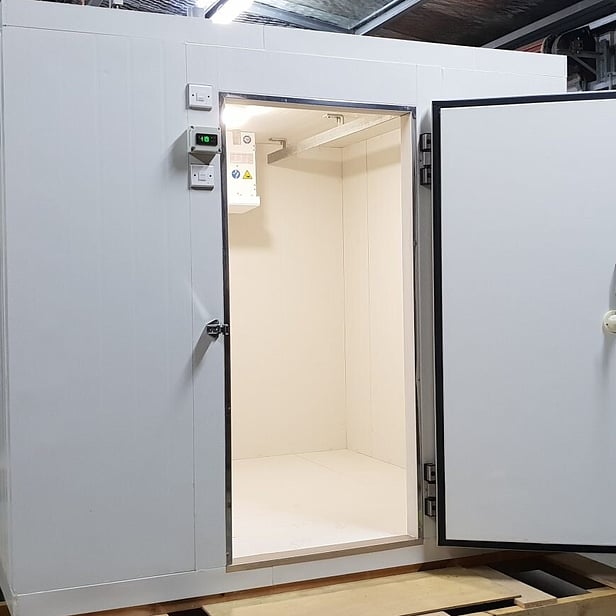 Our walk in chillers are made from high grade from 100mm polyurethane panels with 0.5mm two sided colour plate (Baosteel Brand) which is more durable and ensures a lifetime of 20+ years. Featuring a hinged door using famous German brand hinges. Panels are locked in with zinc coated cam locks. Choose from one of our standard sizes.